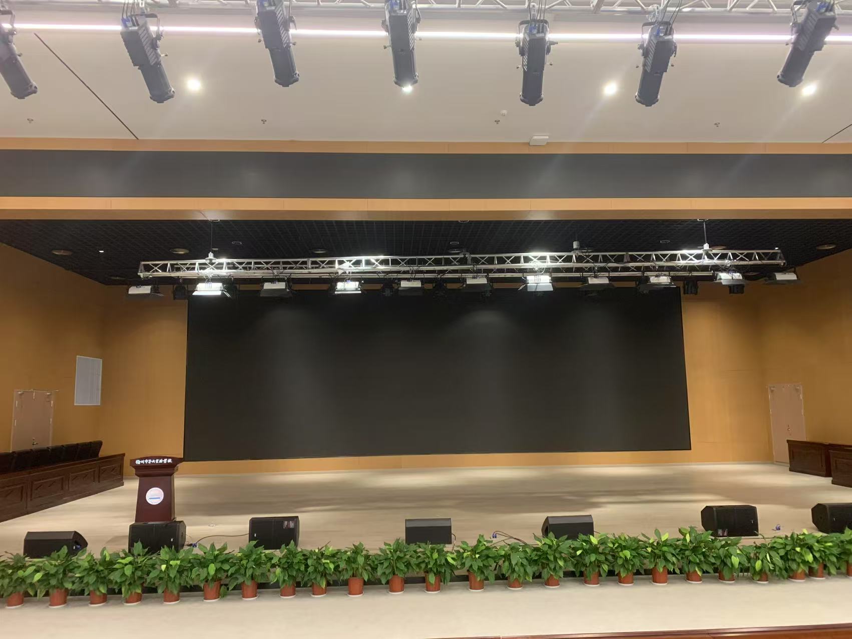 該校有一個報告廳,會用于舉辦一些節(jié)日活動、大型會議、專業(yè)演講等,我們?yōu)榇嗽O(shè)計了一套完整的智能化的聲光電會議系統(tǒng),其中包含了擴(kuò)聲系統(tǒng)、視頻切換系統(tǒng)、數(shù)字會議系統(tǒng)、舞臺燈光系統(tǒng)、舞臺機(jī)械升降系統(tǒng),滿足各種場景下的使用需求。