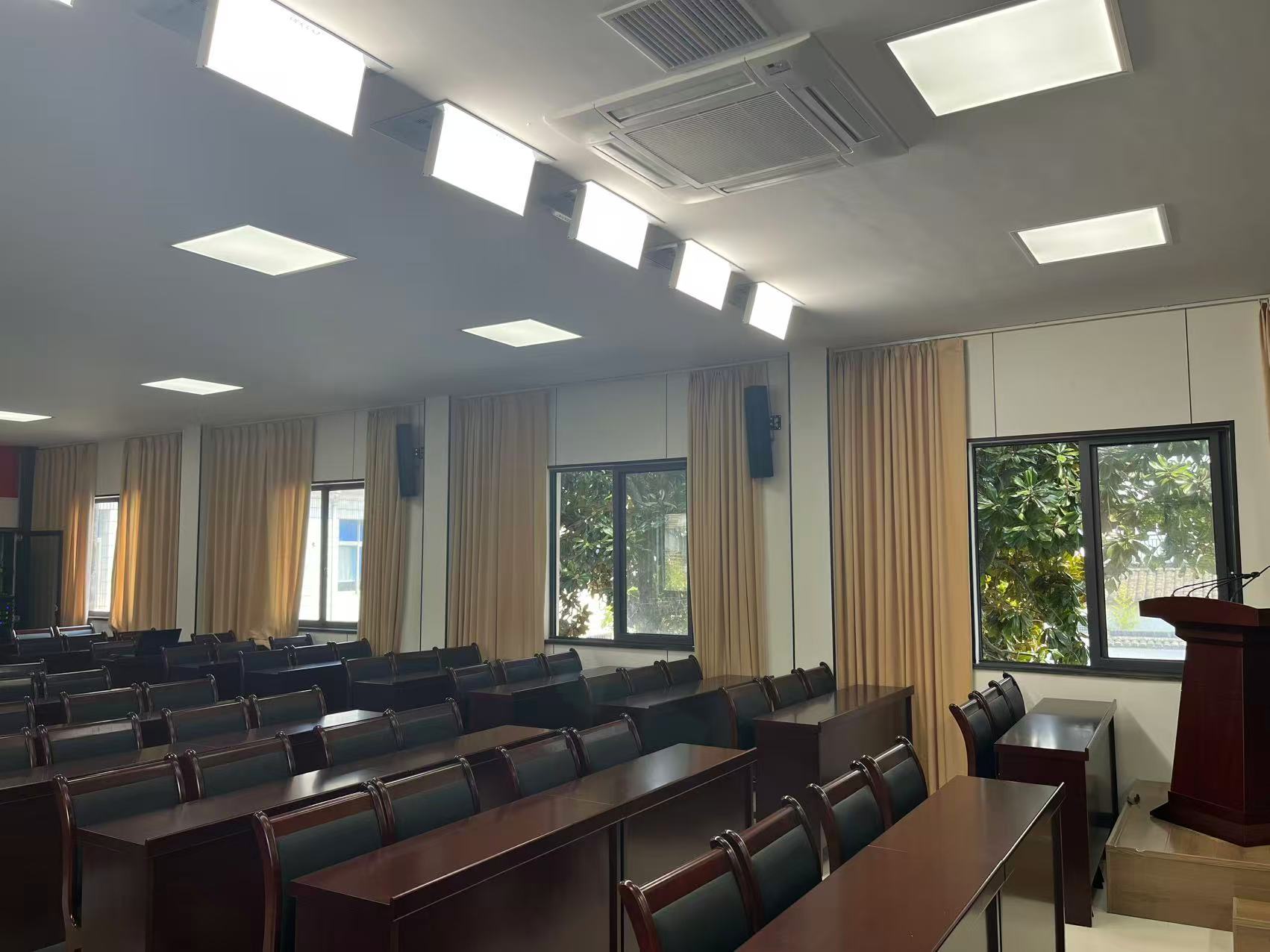 該會議室內(nèi)對燈光要求高,需要照度均勻、設備美觀可隱藏、同時要結(jié)合現(xiàn)場層高及裝修。為此,我司采用嵌入式燈光和可翻轉(zhuǎn)調(diào)角度燈光,嵌入式燈光做為頂光補光,翻轉(zhuǎn)式燈光作為面光補光,可根據(jù)人的座位及高度進行角度調(diào)節(jié),使日常開會時各方面需求達到滿足。