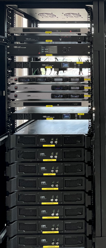 二層多功能廳集音視頻燈光系統(tǒng)一體,均由我司提供調(diào)試,為簡(jiǎn)化其操作配有中控系統(tǒng)。燈光系統(tǒng)滿(mǎn)足日常會(huì)議及活動(dòng)表演,操作簡(jiǎn)單、模式場(chǎng)景多樣。我司專(zhuān)業(yè)燈光師按現(xiàn)場(chǎng)客戶(hù)需求為其打造多種舞臺(tái)效果并標(biāo)簽注明,燈光呈現(xiàn)光束、棱鏡、垂直/水平旋轉(zhuǎn)等多種模式。音頻部分配合客戶(hù)需求,配有U段領(lǐng)夾/手持話(huà)筒、5G會(huì)討話(huà)筒以及合唱話(huà)筒,通過(guò)聲光電一體機(jī)一鍵控制音量大小及切換不同模式。大屏通過(guò)高清視頻矩陣進(jìn)行切換,實(shí)現(xiàn)音頻分離畫(huà)面切換。