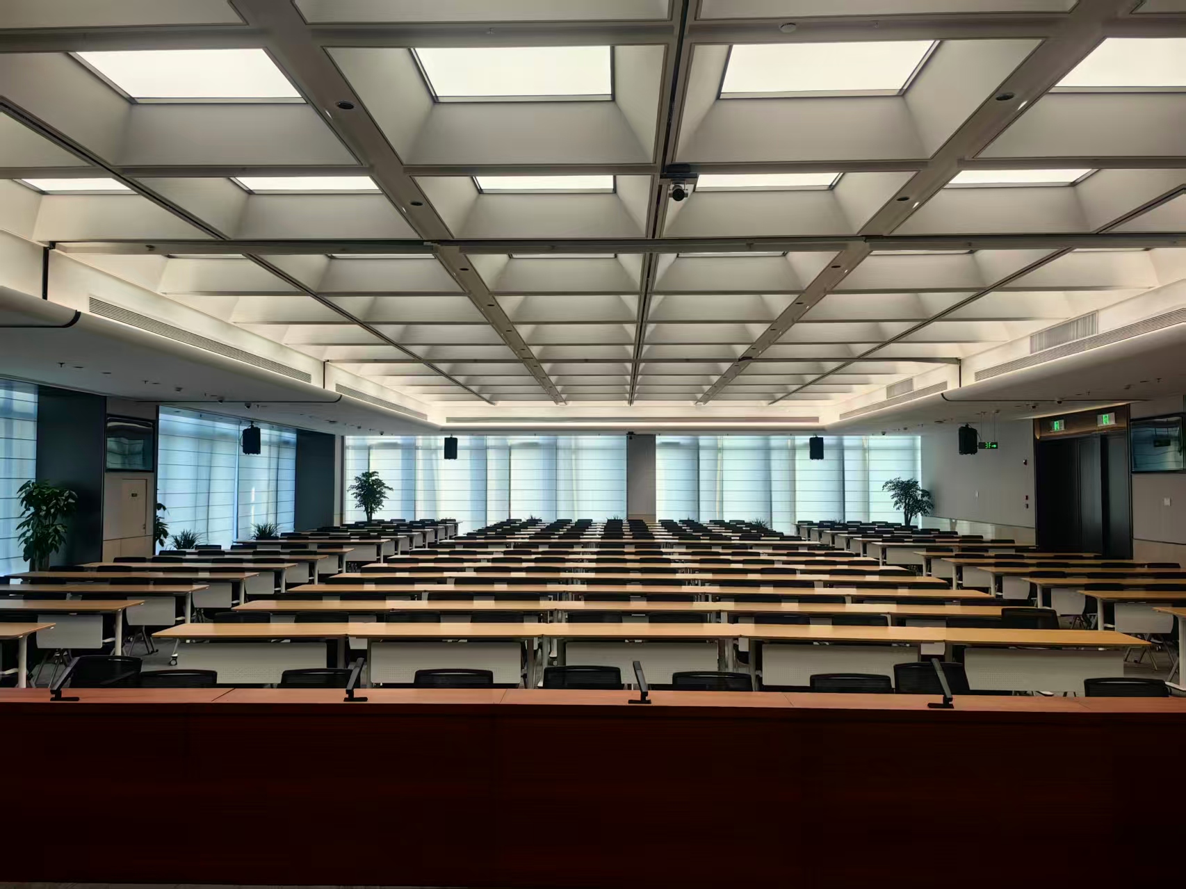 會議室采用DS無線數(shù)字會議系統(tǒng):系統(tǒng)采用無線方式連接,便攜安裝,而且無需布線,不影響整體的裝修布局??蛇B接會場音響擴(kuò)聲及錄音設(shè)備,可與DS中控系統(tǒng)結(jié)合,締造完美的會議系統(tǒng)方案。