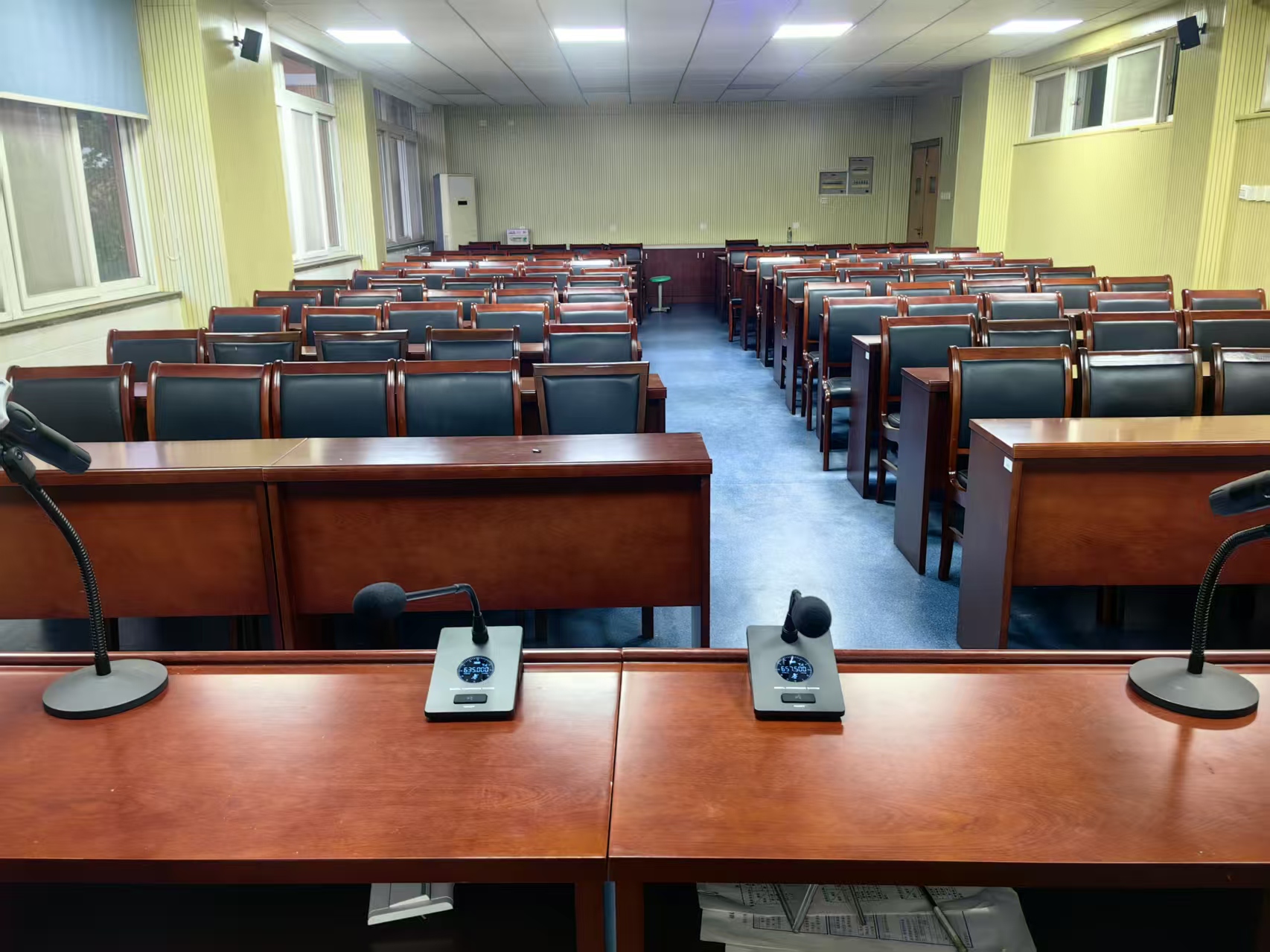 會(huì)議室采用DS無(wú)線數(shù)字會(huì)議系統(tǒng):系統(tǒng)采用無(wú)線方式連接,便攜安裝,而且無(wú)需布線,不影響整體的裝修布局??蛇B接會(huì)場(chǎng)音響擴(kuò)聲及錄音設(shè)備,可與DS中控系統(tǒng)結(jié)合,締造完美的會(huì)議系統(tǒng)方案。